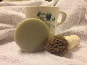 As discussed in my previous post, I've been making soap from scratch lately. A lot of soap! I kept coming across recipes for soaps using tallow, or rendered beef fat as a main ingredient. It's inexpensive and makes for a very hard bar of soap. It's also high in stearic acid, which is a key player in shaving soaps. Hubby likes to shave using shaving soap and a brush and in the past I'd made him shaving soap with a melt and pour base, adding clay to help the razor glide better. I wanted to see if making a cold precess soap with tallow would be an improvement.