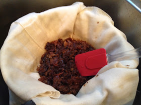I poured the whole mess into a strainer lined with cheese cloth and let it drain into a pot.